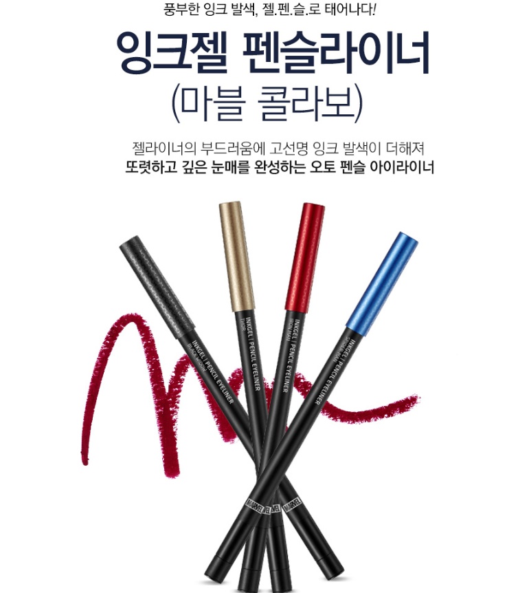 - Ink Gel Pencil Liner: Um delineador em caneta também disponível em quatro cores como as da máscara: preto, vermelho, azul e marrom, cada cor representada por um super-herói da Marvel.