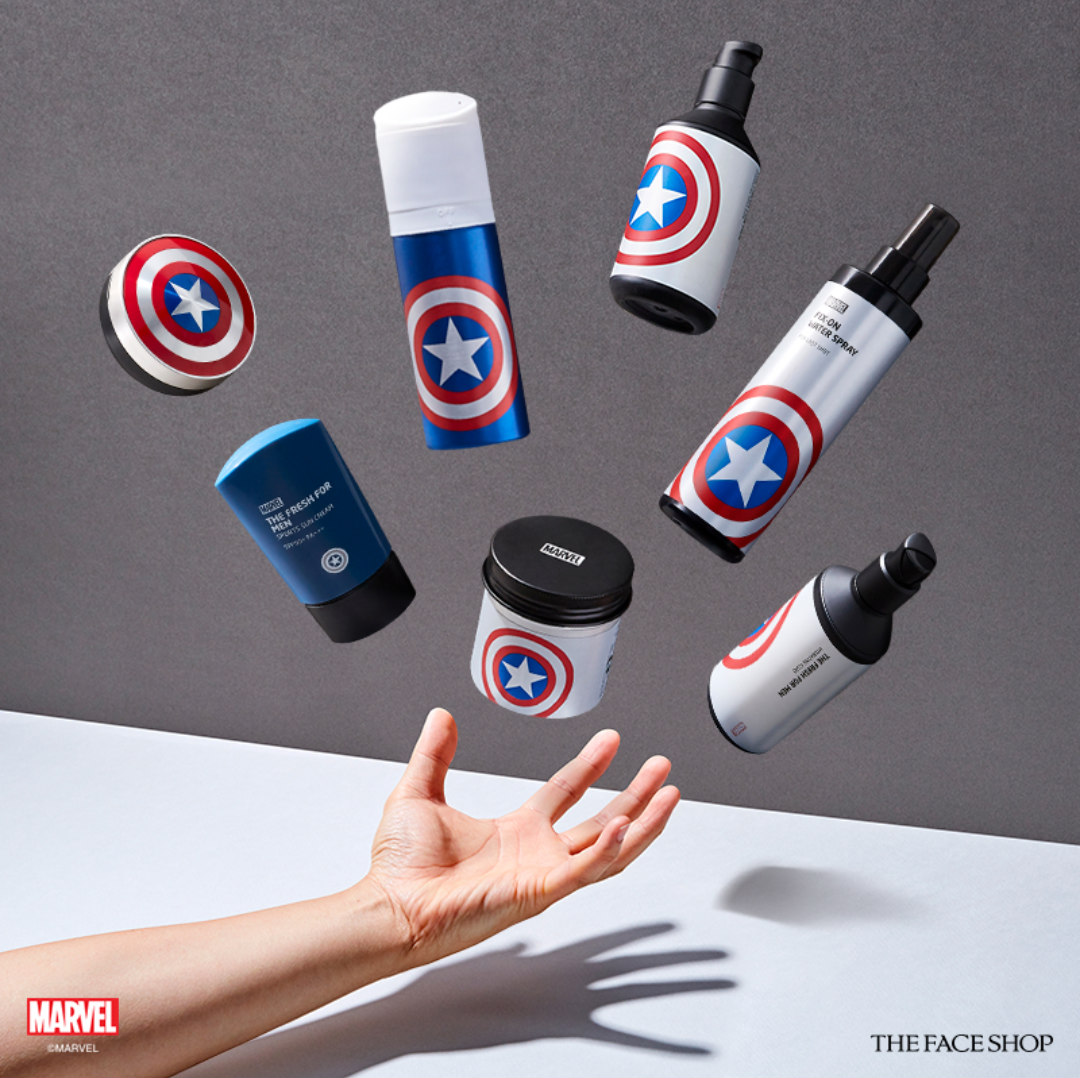 As marcas coreanas de cosméticos são famosas por possuírem linhas de produtos personalizadas e diferenciadas, inspiradas em temas e personagens dos mais diversos. A marca The Face Shop também segue essa tendência e possui várias linhas de produtos temáticos, como sua linha inspirada em personagens da Disney e no filme Trolls. Recentemente a marca lançou uma linha que fez sucesso na internet, a Face Shop X Marvel Comics, com cosméticos inspirados nos super- heróis da Marvel.